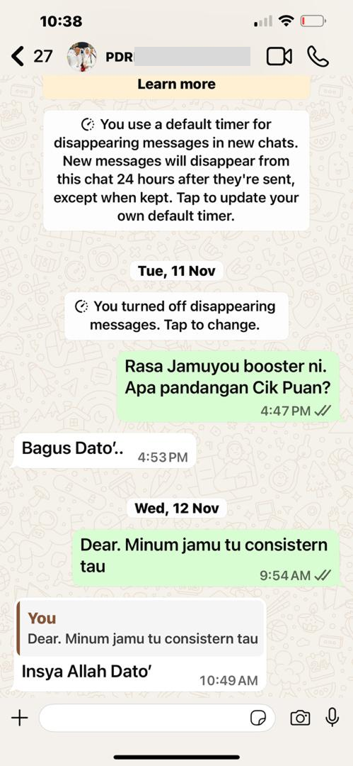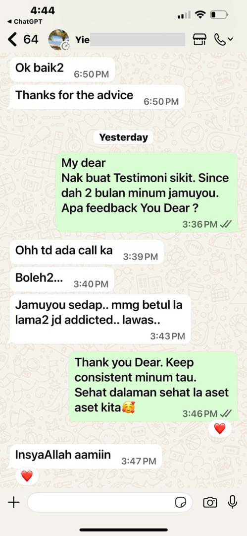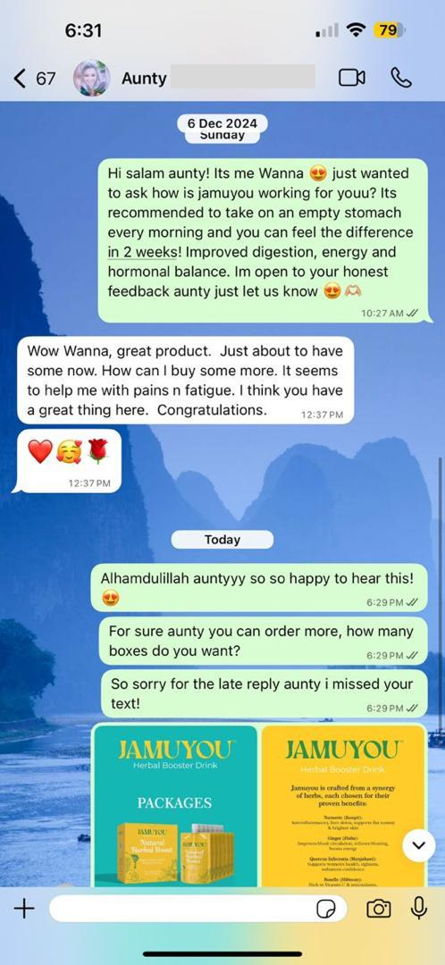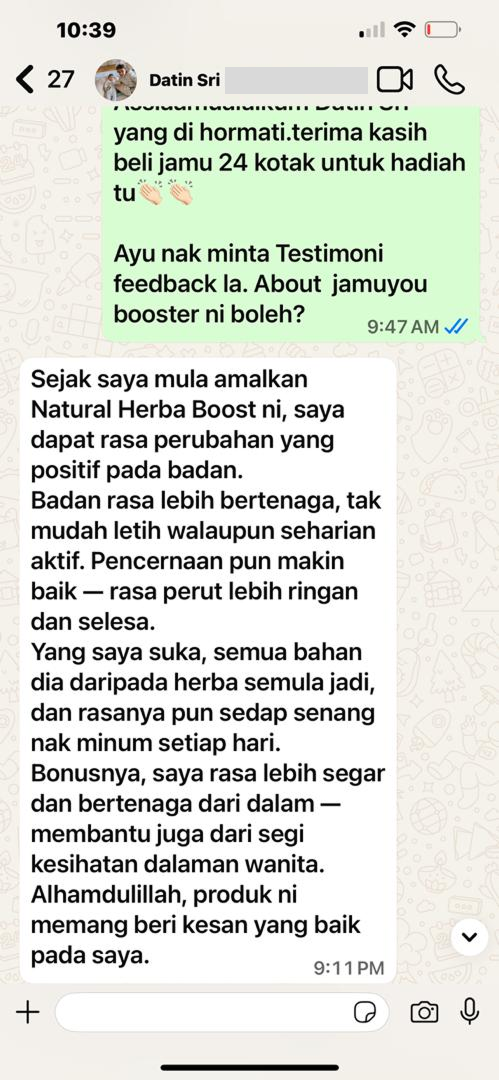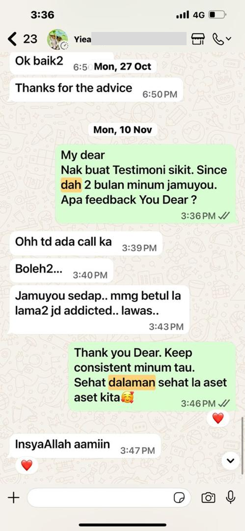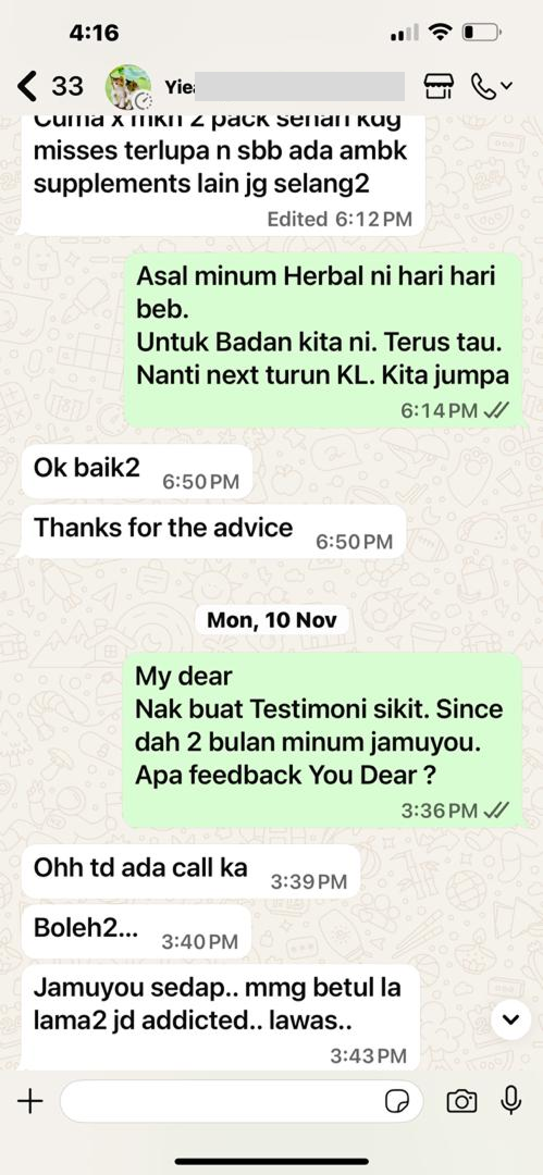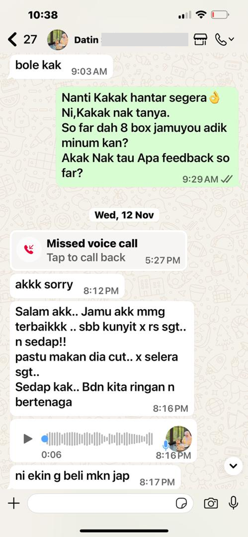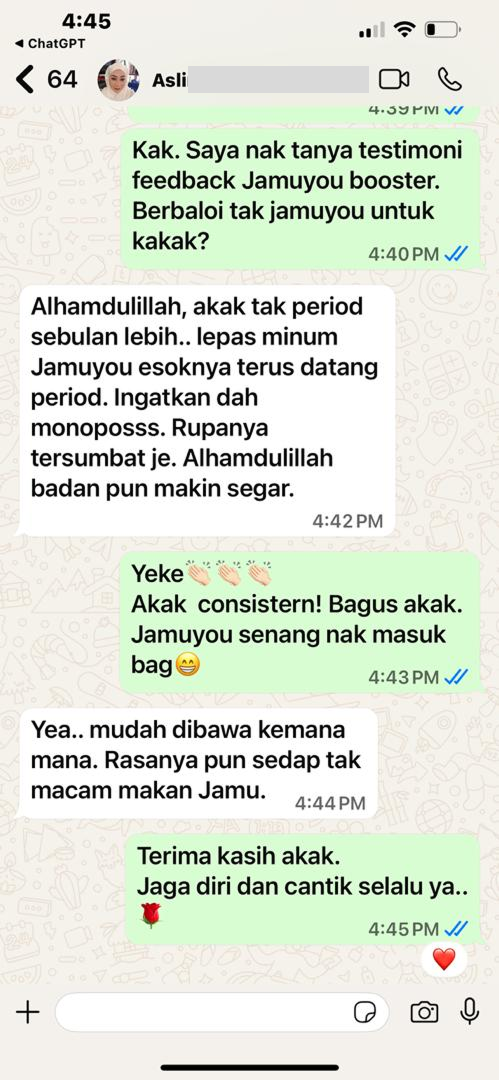“Jamuyou bantu masa pantang. Badan cepat pulih & rahim rasa lebih sihat.”